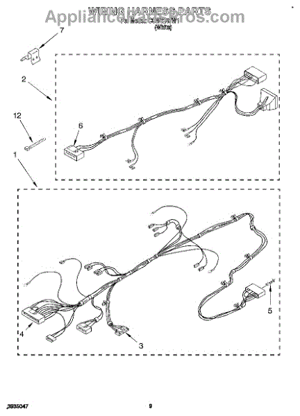 Parts for Whirlpool CCW5243W1: 07 - Wiring Harness Parts