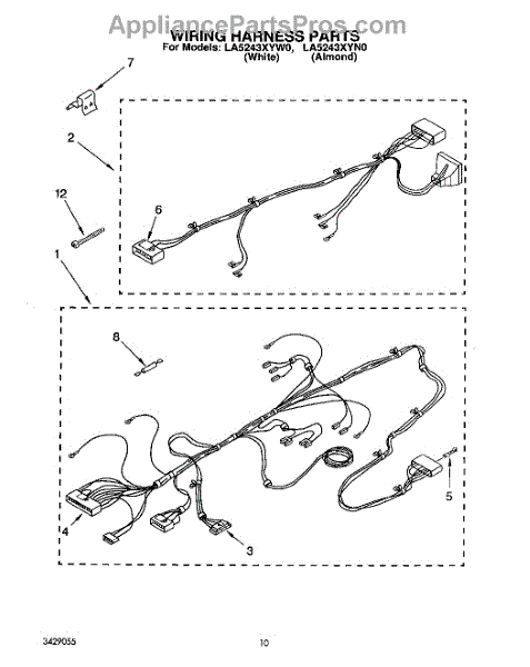 Parts for Whirlpool LA5243XYN0: 07 - Wiring Harness Parts