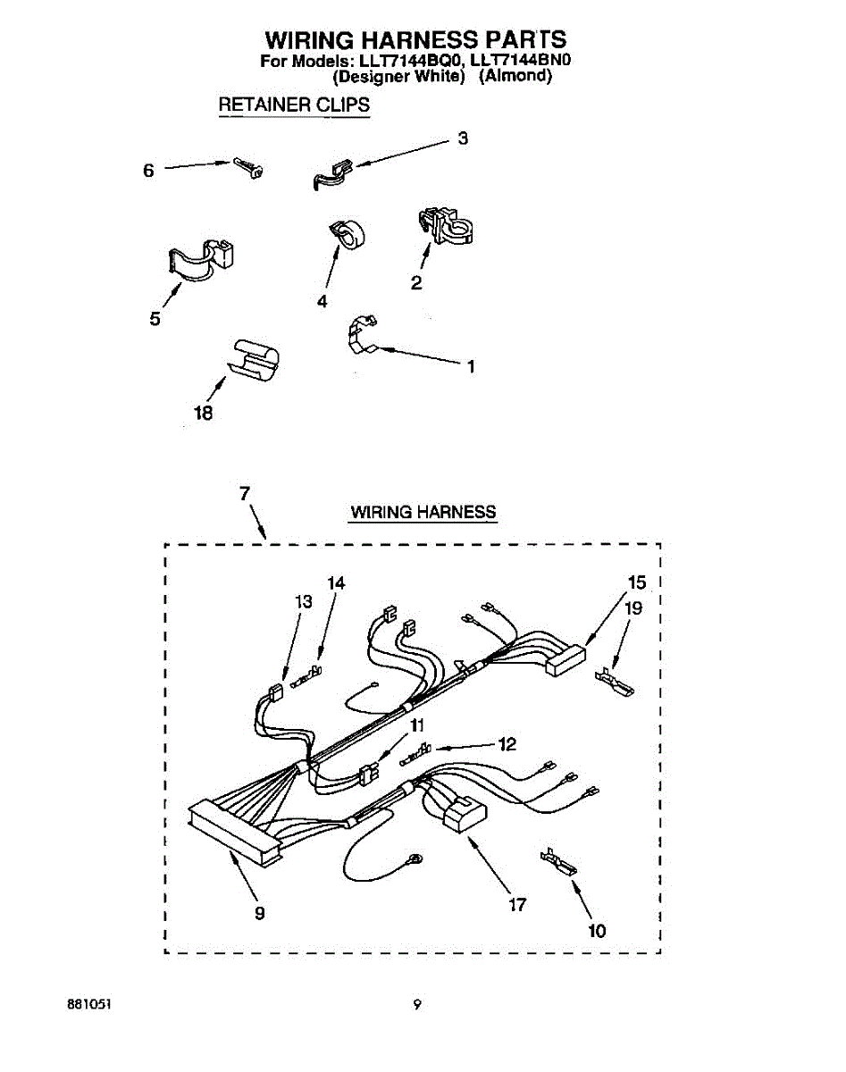 Parts for Whirlpool LLT7144BQ0: 07 - Wiring Harness Parts