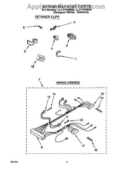 Parts for Whirlpool LLT7144BW0: 07 - Wiring Harness Parts