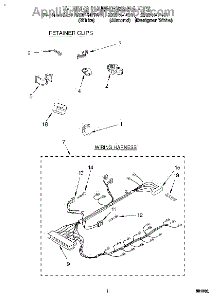 Parts for Whirlpool LSN8244BW0: 07 - Wiring Harness Parts