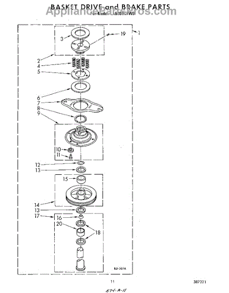 Parts for Whirlpool LA6380XPW0: 08 - Basket Drive And Brake Parts