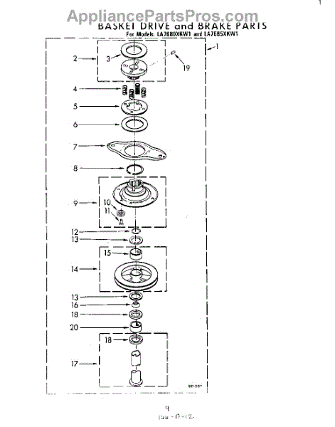 Parts for Whirlpool LA7680XKW1: 08 - Basket Drive And Brake Parts