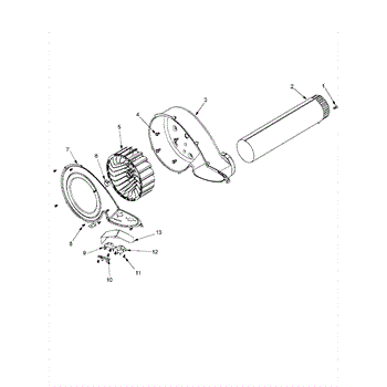 This dryer blower housing encloses the blower wheel and directs air from the drum through the lint filter to the exhaust vent. Replacing a damaged housing restores proper airflow for consistent drying and helps keep lint contained within the airflow path.