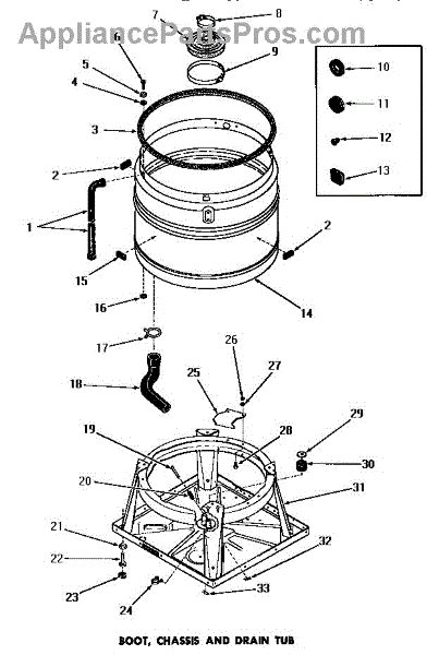 Parts for Amana DA3000: 08 - Boot, Chassis & Drain Tub Parts