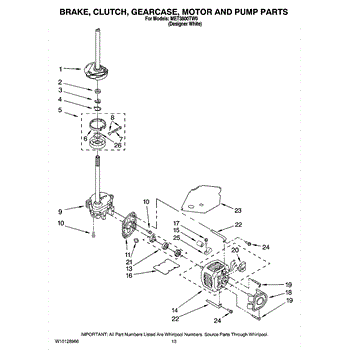 Two large ports with flapper valve. Fits most Whirlpool and Kenmore direct drive washers (no belt models). Related item: Motor coupling 285753A.