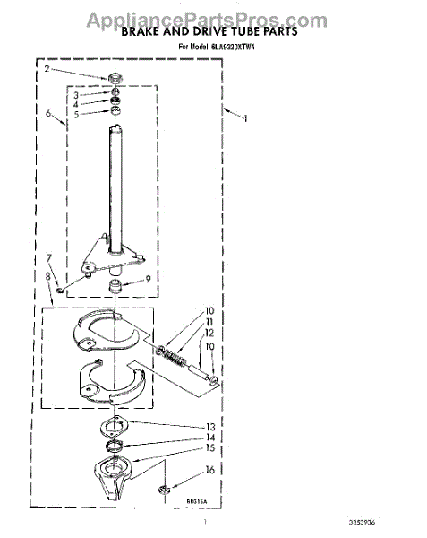 Parts for Whirlpool 6LA9320XTW1: 08 - Brake And Drive Tube Parts