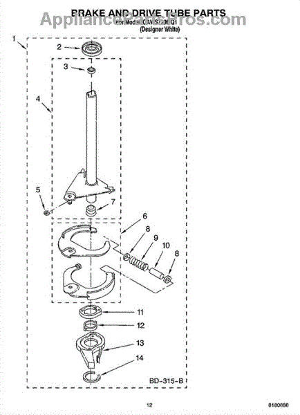Parts for Whirlpool CAWS729MQ1: 08 - Brake And Drive Tube Parts