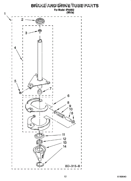 Parts for Whirlpool IP44002: 08 - Brake And Drive Tube Parts