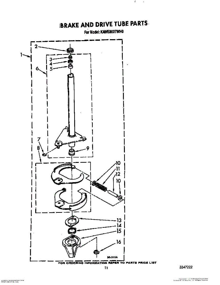 Parts for Kitchenaid KAWE800TWH0: 08 - Brake And Drive Tube Parts