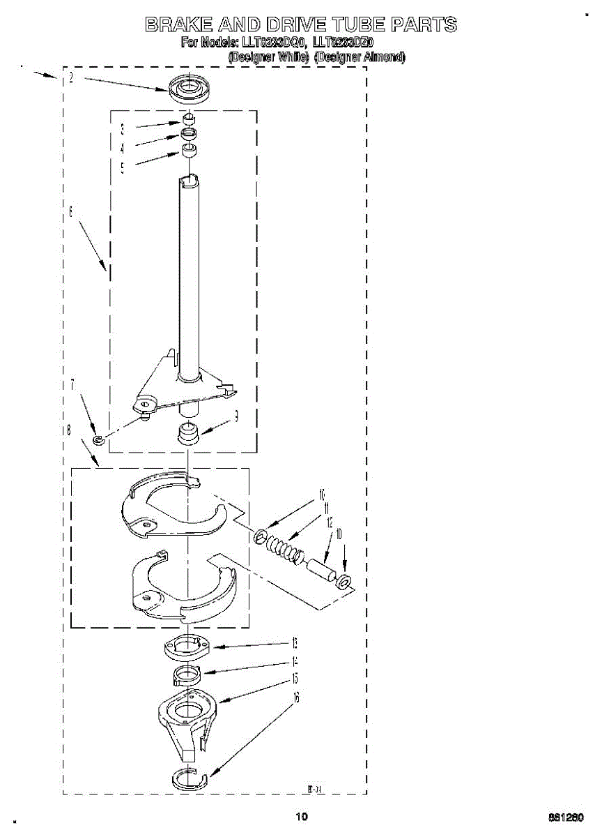 Parts for Whirlpool LLT8233DQ0: 08 - Brake And Drive Tube Parts