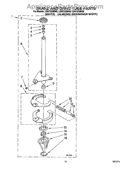 Parts for Whirlpool LSN7233BW0: 08 - Brake And Drive Tube Parts