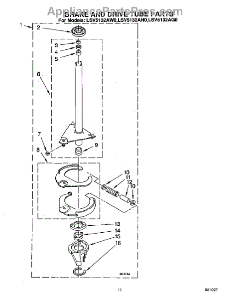 Parts for Whirlpool LSV5132AW0: 08 - Brake And Drive Tube Parts