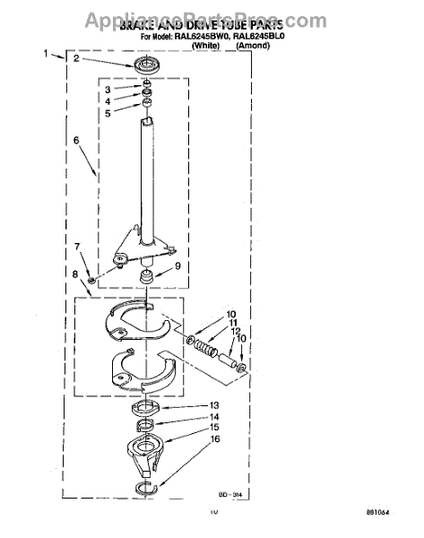 Parts for Whirlpool RAL6245BL0: 08 - Brake And Drive Tube Parts
