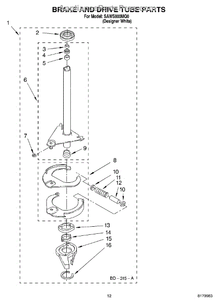 Parts for Whirlpool SAWS800MQ0: 08 - Brake And Drive Tube Parts