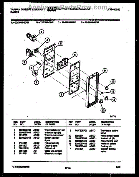 Parts for Frigidaire 72-3989-23-02: 08 - Control Panel Parts
