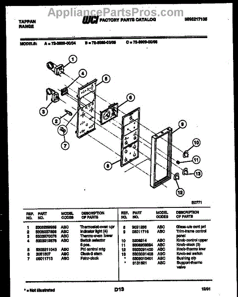 Parts for Frigidaire 72-3989-66-06: 08 - Control Panel Parts