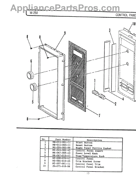 Parts for Hardwick M270: 08 - Control Panel (M250) Parts