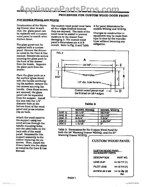 Parts for Thermador WD24QW: 08 - Custom Wood Door Front Parts