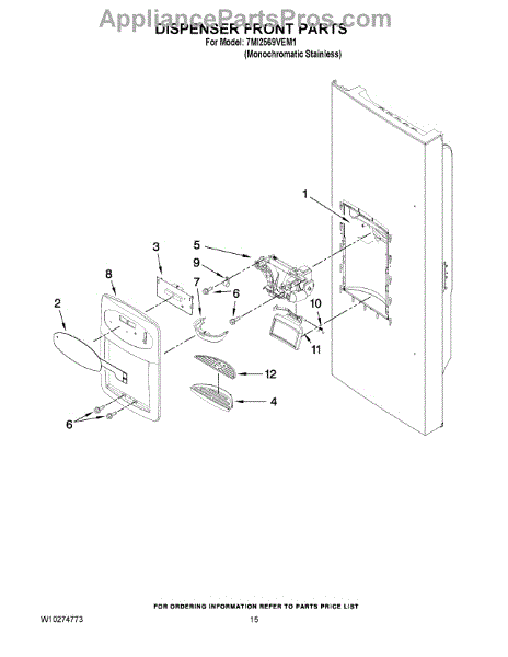 Parts for Maytag 7MI2569VEM1: 08 - Dispenser Front Parts