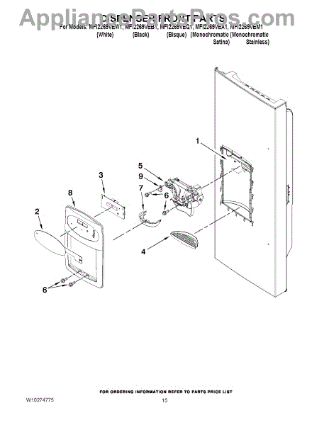 Color: Black - This is a refrigerator user interface assembly. This part allows the user to control the settings on the refrigerator and is black in color. This part holds the control buttons for the light, humidity control, fast cool, door alarm, temperature alarm, filter reset, ice dispenser, and water dispenser. This part may be faulty if the refrigerator does not respond when buttons on the UI are pressed. Another symptom of a bad user interface assembly is if the digital display is no longer working. Since the buttons on this part control the majority of the functions of the refrigerator, symptoms could show up in a variety of ways. This component is sourced directly from the manufacturer. It is sold individually as a genuine, high-quality, durable part. This particular user interface assembly is compatible with refrigerators that are manufactured by the Maytag and Whirlpool brands.