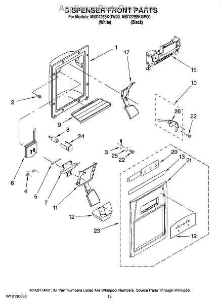 Parts for Maytag MSD2258KGB00: 08 - Dispenser Front Parts