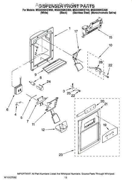 Parts for Maytag MSD2269KEW00: 08 - Dispenser Front Parts