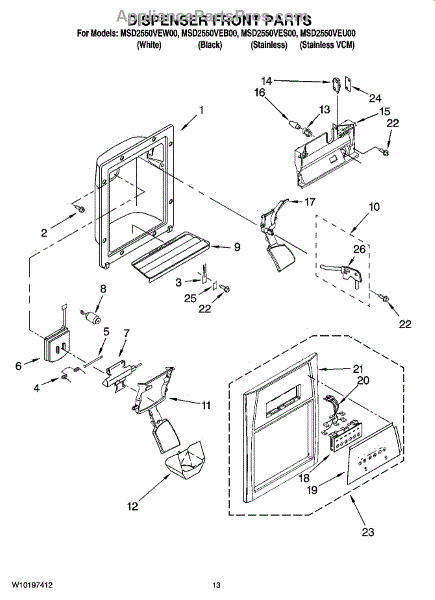 Parts for Maytag MSD2550VEW00: 08 - Dispenser Front Parts