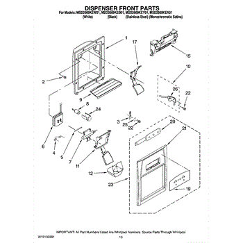 The Ice Dispenser Guide is an OEM replacement part for Whirlpool brand refrigerators. These brands also include Maytag, KitchenAid, Norge, Roper, Estate, and Kenmore models. It directs ice from the ice bucket to the dispenser chute. It helps to prevent jams by guiding the ice through the dispenser system smoothly and evenly.