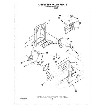 The Ice Dispenser Lever is an OEM component specifically designed for Whirlpool side-by-side refrigerators with built-in ice dispensers. Located inside the ice and water compartment, the lever is responsible for releasing cubed or crushed ice when engaged. Symptoms of a bad ice dispenser lever include: