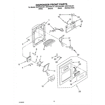 The Ice Dispenser Lever is an OEM component specifically designed for Whirlpool side-by-side refrigerators with built-in ice dispensers. Located inside the ice and water compartment, the lever is responsible for releasing cubed or crushed ice when engaged. Symptoms of a bad ice dispenser lever include: