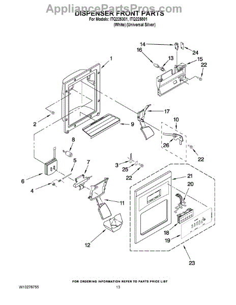 Parts for Whirlpool ITQ225301: 08 - Dispenser Front Parts