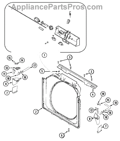 Parts for Maytag MLG19PDSAW: 08 - Door Shroud & Door Latch Assembly (Wash) Parts