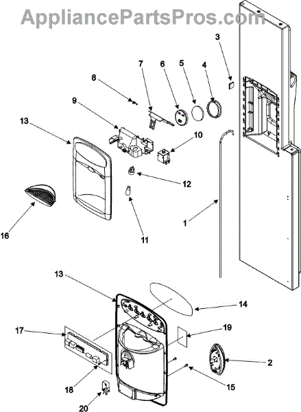 The Dispenser Overlay is an OEM part for Whirlpool refrigerators. It is a component that covers and protects the control panel and buttons of the dispenser on the fridge. It provides a protective barrier against dust, moisture, and every day wear and tear, helping to maintain the appearance and functionality of the dispenser.