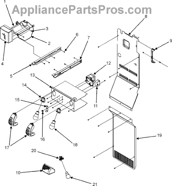 This ice maker cover shields the front of the ice maker assembly, protecting the module and moving parts from dust and accidental contact. Replacing a cracked or missing cover restores a clean, finished appearance and keeps components protected.