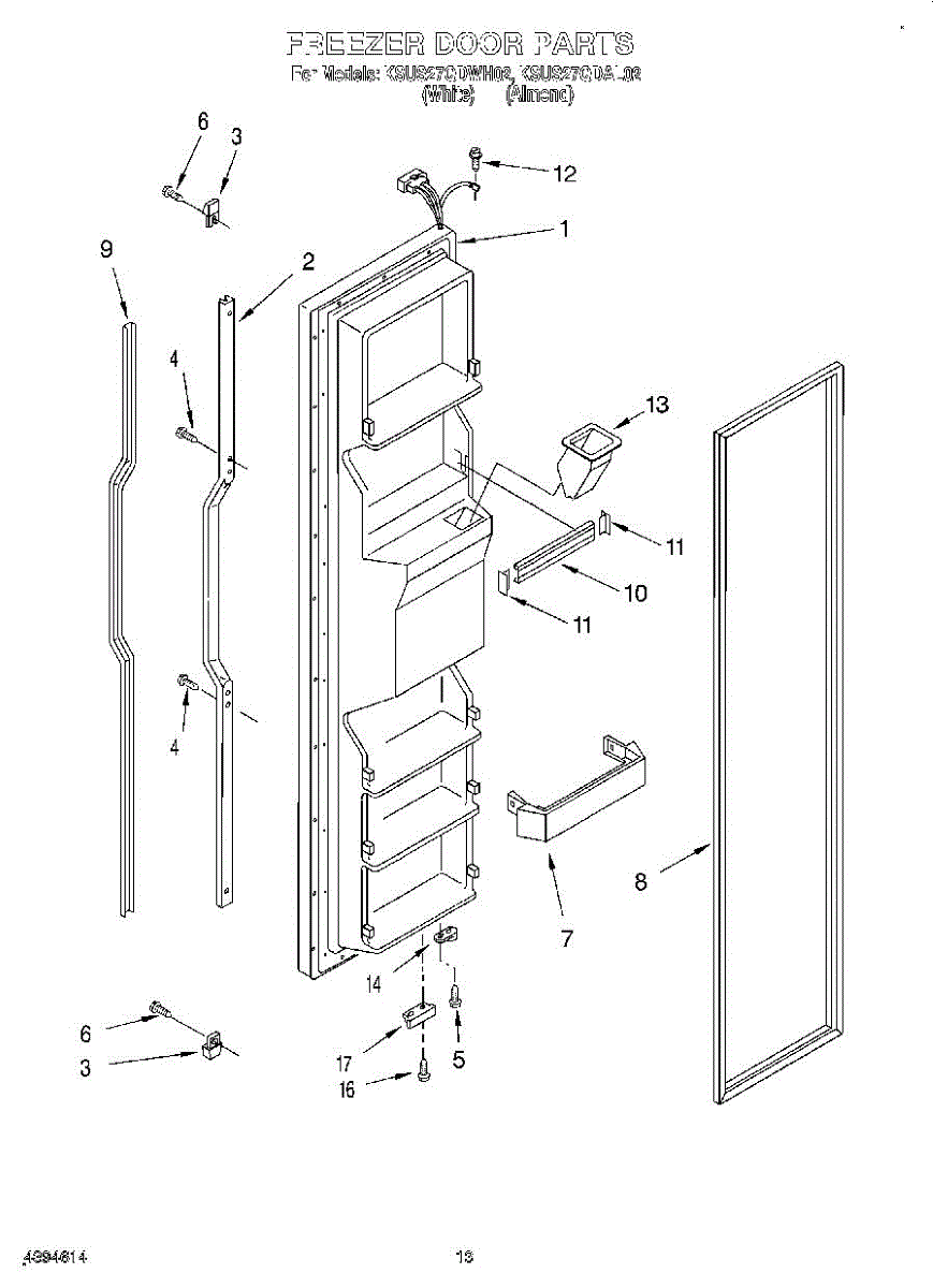 The Freezer Door Gasket is an OEM replacement part for Whirlpool refrigerators. It creates a tight insulating seal around the perimeter of the freezer door opening. The gasket helps maintain consistent sub-freezing temperatures inside by preventing cold air loss. Causes relate to natural compression fatigue over time, cracks developing with use, or accidental slicing/tears from sharp edges within the freezer. Symptoms of a compromised gasket include: