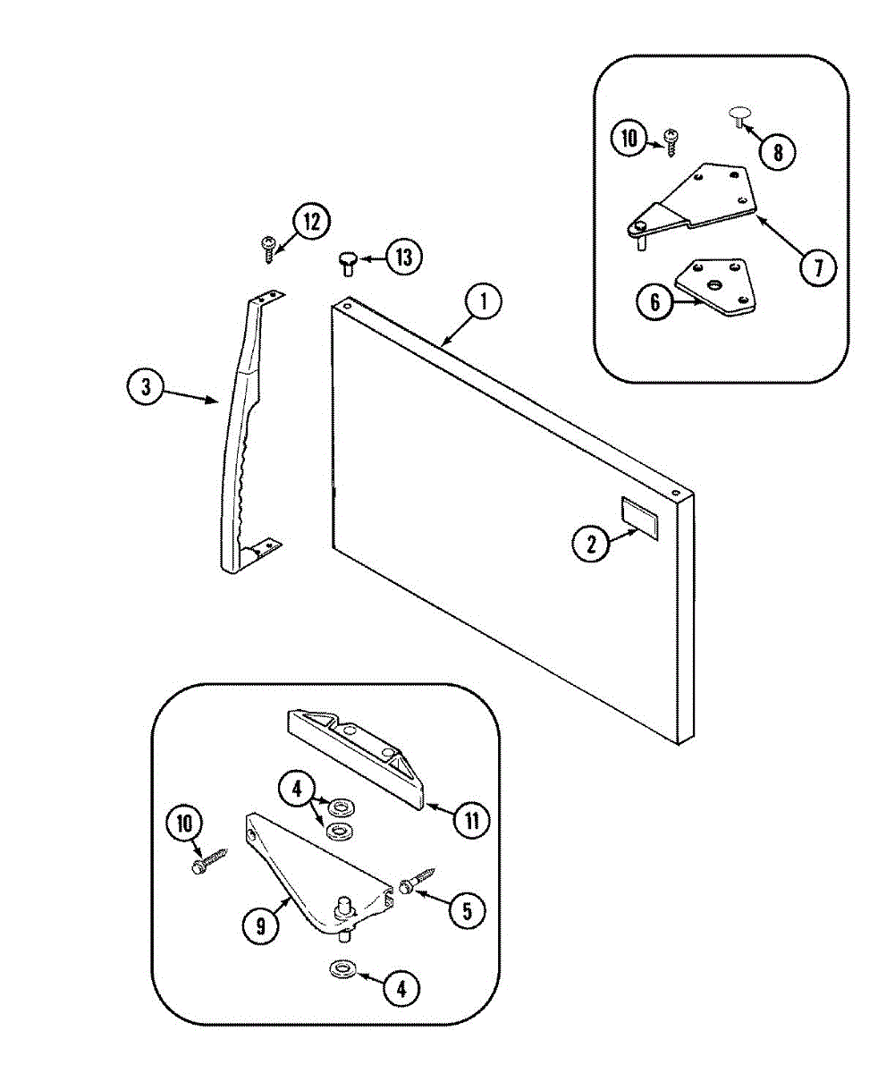 Mounting screw secures panels, brackets, and trim on refrigerators and washers. Replace when fasteners are missing, loose, stripped, or damaged.