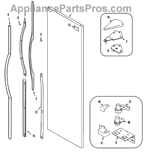 Replaces a worn or broken door closer that mounts on the refrigerator hinge. Restores smooth closing action when the original cam is cracked or damaged.