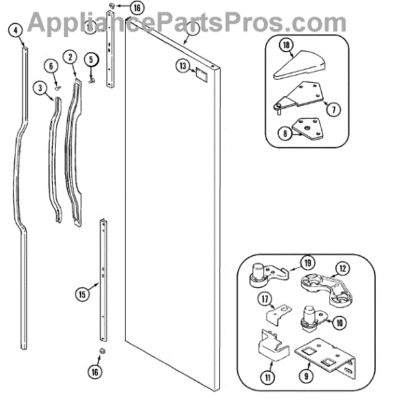 Replaces a worn or broken door closer that mounts on the refrigerator hinge. Restores smooth closing action when the original cam is cracked or damaged.