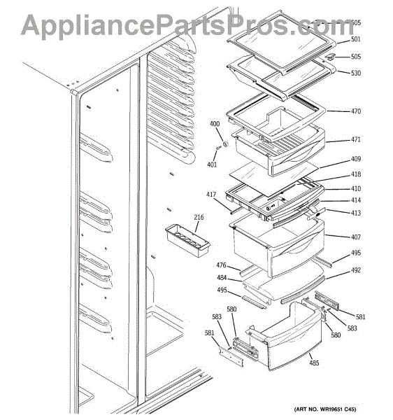 The Shelf Stop is an OEM replacement part for GE refrigerators. The shelf stop in your refrigerator is what locks the shelf into the refrigerator liner.The shelf stop features a small protruding nub that fits into pre-cut slots in shelf supports, preventing shelves from being inserted too far. Causes of a bad shelf stop can include wear over many years of shelf adjustment, or damage from impact with shelves. Symptoms of a bad shelf stop include: