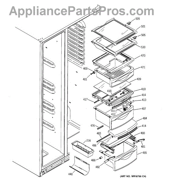 The Drawer Cover is an OEM replacement part for select GE refrigerator vegetable and deli drawers. It protects stored contents from dehydration, contaminants and prolonged illumination while keeping the drawers light-sealed. Proper drawer insulation optimizes food storage conditions. Causes of a bad drawer cover can include cracks and breaks from repeated drawer opening/closing stresses over time. Exposure to produce acids and moisture accelerates degradation of plastic sealing surfaces. Symptoms include: