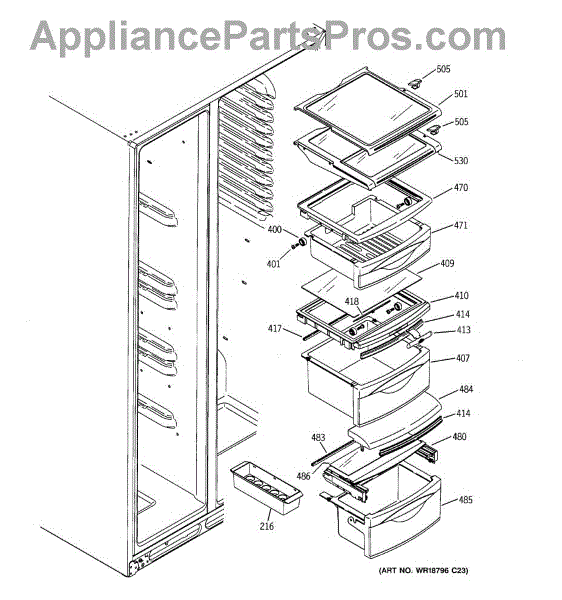 The Drawer Cover is an OEM replacement part for select GE refrigerator vegetable and deli drawers. It protects stored contents from dehydration, contaminants and prolonged illumination while keeping the drawers light-sealed. Proper drawer insulation optimizes food storage conditions. Causes of a bad drawer cover can include cracks and breaks from repeated drawer opening/closing stresses over time. Exposure to produce acids and moisture accelerates degradation of plastic sealing surfaces. Symptoms include: