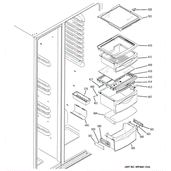 The Fruit and Vegetable Pan Shelf is an OEM part for GE refrigerators. Designed to provide sturdy support and optimal storage for fruit and vegetable pans, this shelf is an essential component for organizing and accessing your produce with ease. It fits snugly above the fruit and vegetable drawers, maximizing space utilization within the fridge and helping maintain the freshness of fruits and vegetables by ensuring proper air circulation around them.