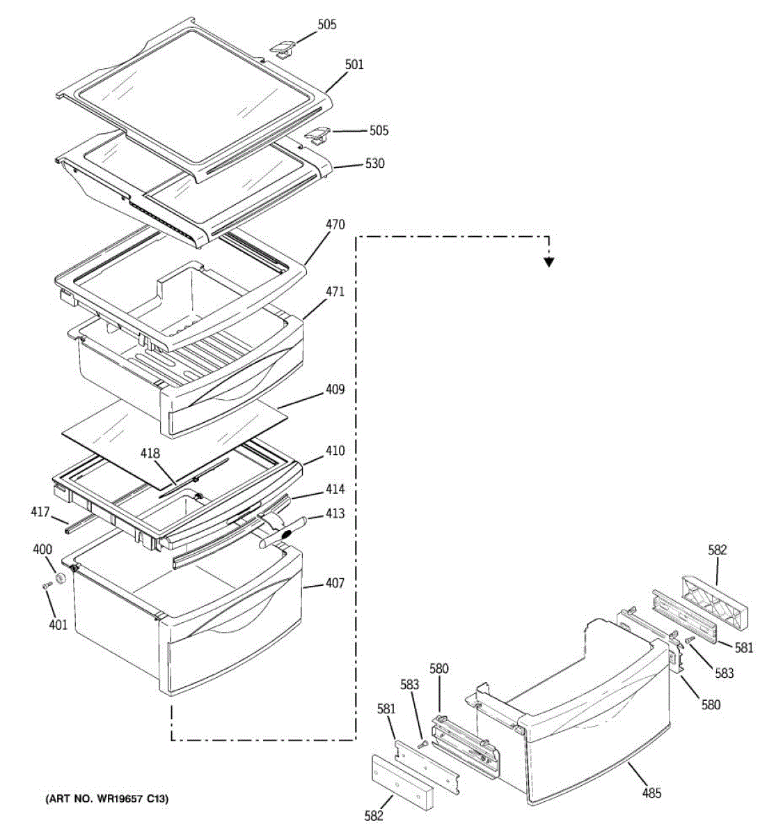 Parts for Ge RSK25MGMJCCC: 08 - Fresh Food Shelves Parts