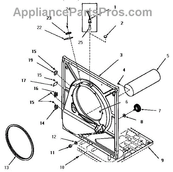 This drum support roller cushions and guides the dryer drum so it turns smoothly and quietly. Replacing a worn roller restores stable drum rotation and reduces noise, vibration, and uneven tumbling. What it does:
