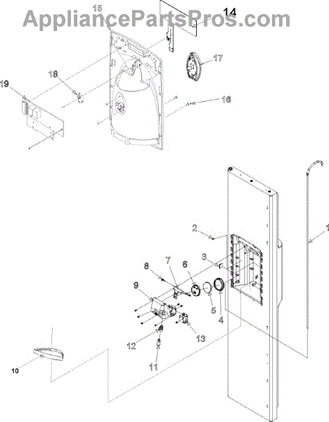 Replaces broken or cracked ice chute door on side-by-side refrigerators. Snaps onto dispenser assembly. Common issues: broken clips, cracked hinge.