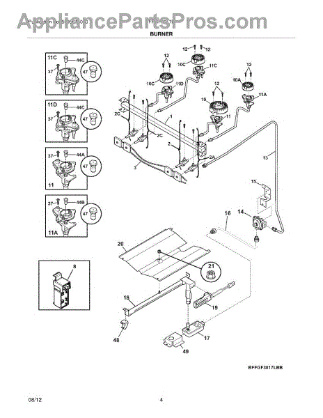 Secures the burner orifice in position to deliver the correct gas jet size for your 12,500 BTU natural gas burner. Replace if cracked, broken, or missing.