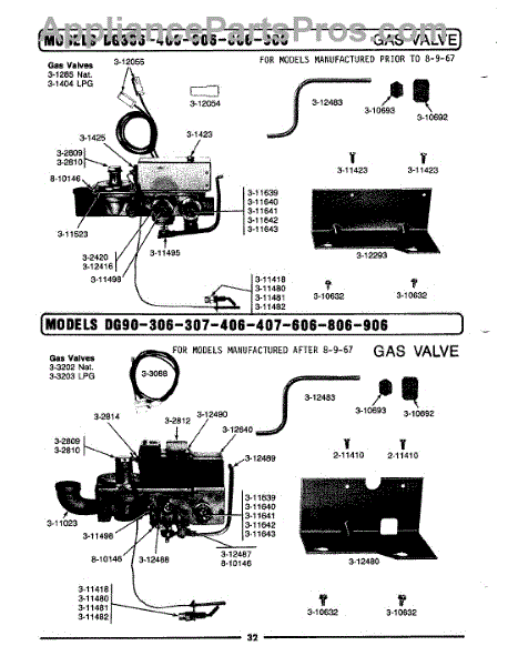 Parts for Maytag DG407: 08 - Gas Valve (After 8-9-67) Parts