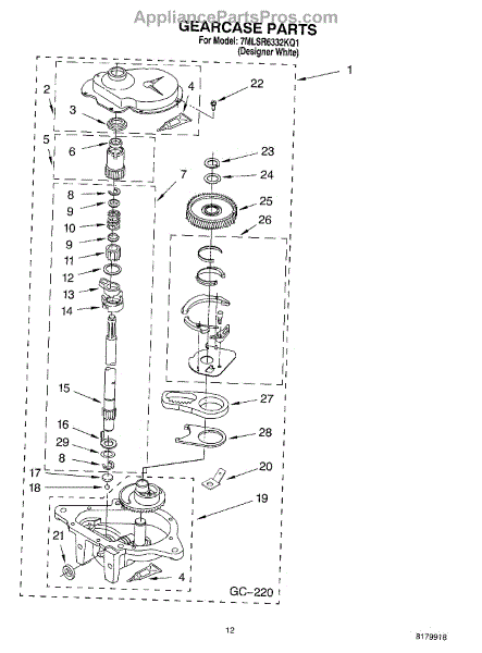 Parts for Whirlpool 7MLSR6332KQ1: 08 - Gearcase Parts
