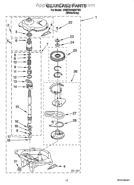 This gearcase is the washer transmission housing that supports the drive gears and enables the agitator/spin functions to transfer motor torque to the wash basket. Replacing a worn gearcase restores reliable mechanical drive and reduces grinding or slipping. What it does: